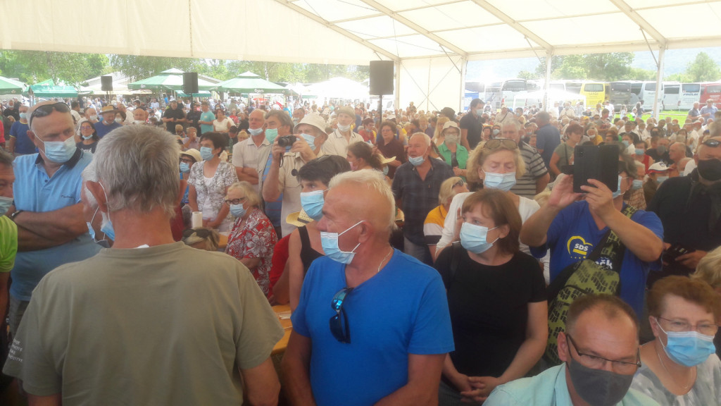 Na tradicionalnem srečanju članov občinskih in mestnih odborov SDS se je na bovškem letališču zbralo blizu štiri tisoč članov SDS, njihovih simpatizerjev in podpornikov.