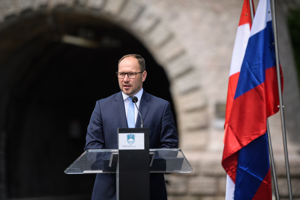 Minister Jernej Vrtovec na slovesnosti ob sprostitvi železniškega prometa skozi Karavanški predor | Avtor MZI