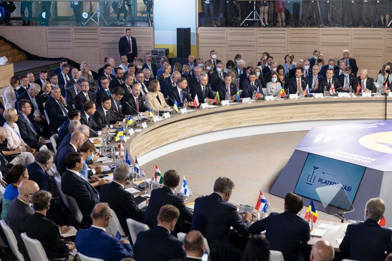 Današnjega vrha se udeležujejo visoki politični predstavniki več kot 40 držav, med njimi predsednik Evropskega sveta Charles Michel ter predsedniki Finske, Poljske, Madžarske, Slovaške, Litve, Latvije, Estonije, Moldavije in Severne Makedonije ter predsedniki vlad ali ministri za zunanje zadeve držav članic Evropske unije.