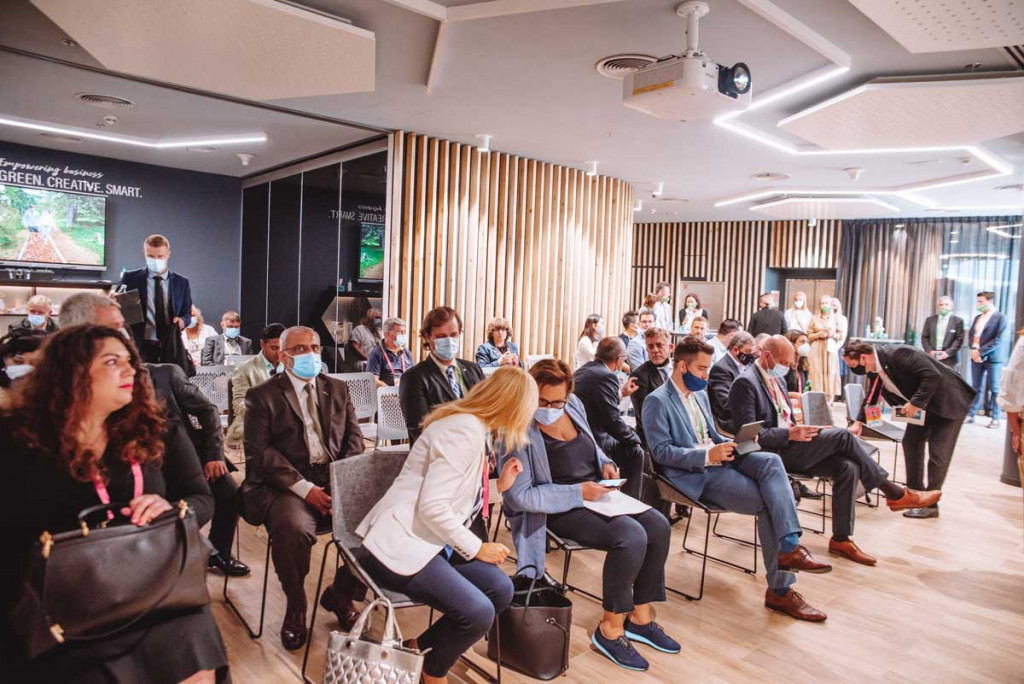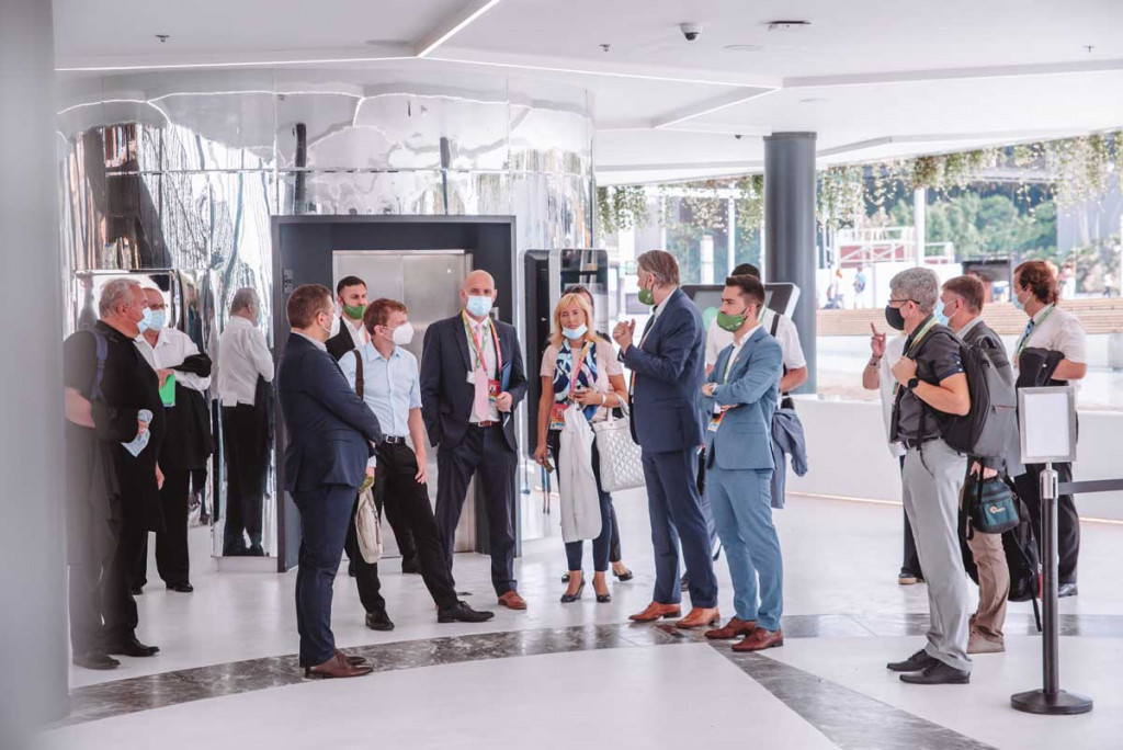 Na slovenskem nacionalnem paviljonu je včeraj dopoldne potekal poslovni forum, na katerem so slovenska podjetja predstavila svoje aktivnosti dosežke in možnosti za sodelovanje. Udeležence so uvodoma nagovorili državni sekretar Simon Zajc, direktorica Urada Združenih narodov za vesoljske zadeve (UNOOSA) Simonetta Di Pippo, generalni komisar Slovenije na EXPO Matic Volk in direktor javne agencije SPIRIT Slovenija dr. Tomaž Kostanjevec.