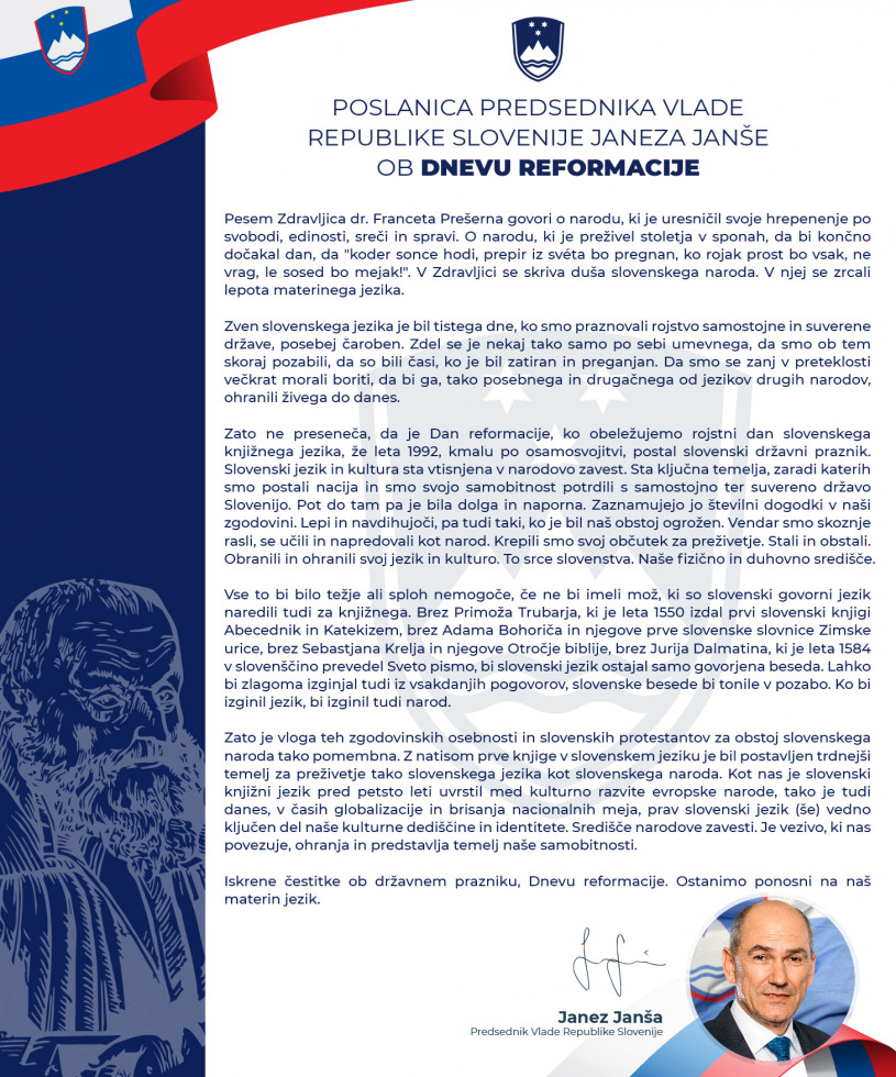 Poslanica predsednika vlade Janeza Janše ob državnem prazniku Dnevu reformacije