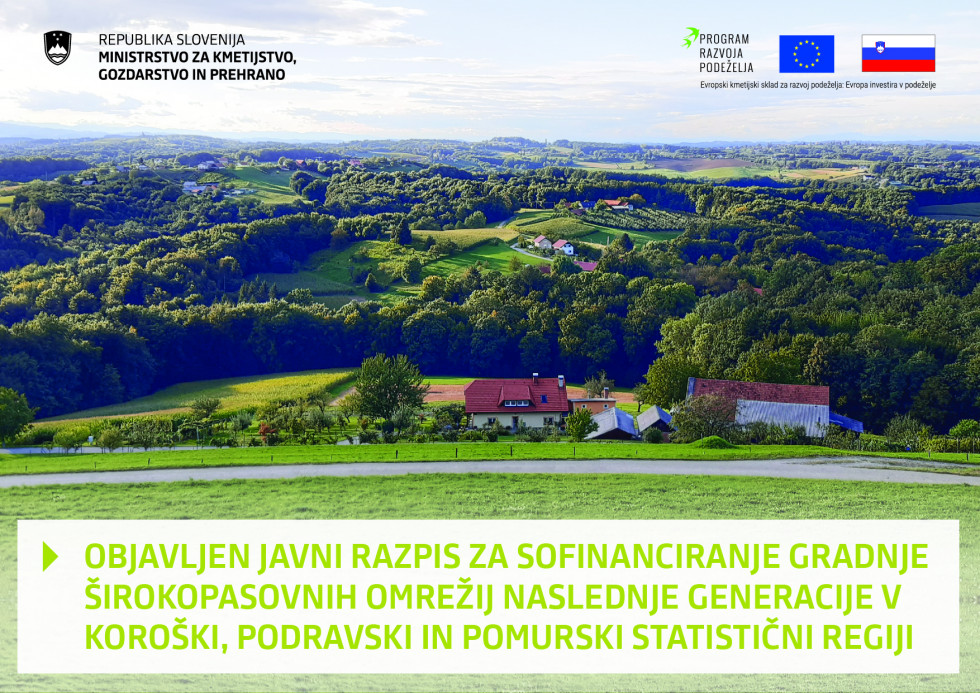 Ministrstvo za kmetijstvo, gozdarstvo in prehrano je objavilo 3. javni razpis iz naslova Programa razvoja podeželja 2014-2020, ki je namenjen operaterjem elektronskih komunikacij za sofinanciranje gradnje širokopasovnih omrežij naslednje generacije. Za investicijo je predvidenih 5,3 milijona evrov sredstev.