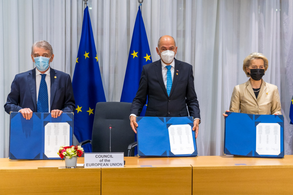 Predsednik vlade Janez Janša, v imenu predsedujoče države Svetu EU, predsednik Evropskega parlamenta David Sassoli in predsednica Evropske komisije Ursula von der Leyen so s podpisom omenjene deklaracije določili skupno vizijo za prihodnje leto za še bolj odporno Evropo.