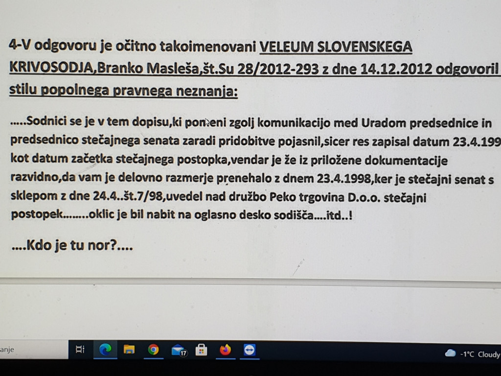 V delu slovenske javnosti je v preteklosti dosegel velik odmev rigoroznega postopanja državnega uslužbenca v imenu kraljice postopkov, državnega okrožnega tožilca Primoža Horvata iz Murske Sobote, v primeru novinarja Prava.si Luke Perša. Pod sodbo se je podpisal sedanji predsednik Okrožnega sodišča v Murski Soboti Stanislav Žižek. Po našem vloženem ugovoru se bo primer preselil v sodno dvorano.Foto: Posnetek zaslona-Nova24tvGlej ga zlomka – zdaj smo v naše uredništvo dobili primer, ki nakazuje, da bi moral nekdo iz Okrožnega državnega tožilstva v Murski Soboti enako rigorozno postopati proti sedanjemu poslancu Gibanja Svoboda Dejanu Süču.Foto: Prava.siV našem mediju smo že večkrat omenjali sedanjega poslanca Gibanja Svoboda iz okolice Lendave, Dejana Süča . Tako smo razkrili predvsem njegove dodatne mesečne zaslužke v višini 4000 evrov pri Pomurski madžarski samoupravni narodni skupnosti v članku z naslovom Dejan Süč, Tomaž Vesel Golobove vlade! V popoldanskem šihtu zasluži vsak mesec štiri tisoč evrov! Za kmetijstvo se mu FUČKA!! ter Madžari jezni na Dejana Süča! Kdaj bo ukrepala Irena Šinko in Süču ZABIČALA, da se naj NEHA ZAJEBAVATI S PRIVATNIMI BIZNISI!.V letu 2024 pa smo razkrili še en incident, ki ga je po pričevanju zaposlenih Süč zakuhal v gostinskem delu lendavske turistične atrakcije Vinarium, o čemer smo pisali v članku z naslovom Poslanec Gibanja Svobode Dejan Süč naredil incident v lokalu Vinariuma!? Vpil na zaposlene "A veš kdo sem jaz?".V naše uredništvo smo dobili dokumentacijo, ki vsaj nakazuje naznanilo suma kaznivega dejanja poslanca Süča . Sodeč po tem, kar smo videli, bi moral poslanec po nekaterih členih kazenskega zakonika odgovarjati za naznanilo suma krivega pričanja.V enem izmed dogodkov znotraj Lendavske turistične zveze lahko zelo verjetno domnevamo, da se je zgodil sum krivega pričanja Suča kot priče v enem izmed postopkov na sodiščih v Pomurju. Pozabil je, da je na eni izmed skupščin leta 2023 glasoval za sklep, da ena izmed predstavljenih kandidatk zasede eno izmed višjih funkcij znotraj te zveze. Pa še sam jo je predlagal in oblikoval svet, o katerem so glasovali vsi prisotni!Sklep iz skupščine Turistične zveze Lendave. (Foto: Bralec Prava.si)Na sodišču je kot priča gladko povedal, da o tem sklepu ni glasoval in da se ni strinjal s tem, da ta kandidatka v prihodnje zasede eno izmed višjih funkcij znotraj zveze. Po njegovem mnenju je glasoval, da omenjena kandidatka zasede funkcijo vršilke dolžnosti brez pooblastil.Vendar smo v uredništvo pridobili tako zvočno dokumentacijo kot pisno dokumentacijo, kjer je jasno vidno, da lahko – vsaj sodeč po zbranem gradivu – domnevamo naznanilo suma kaznivega dejanja Dejana Süča zaradi krivega pričanja.Bomo videli, ali bodo državni uslužbenci kraljice postopkov v Murski Soboti enako rigorozni pri ukrepanju proti poslancu Gibanja Svoboda Dejanu Süču , kot so bili proti novinarjuPrava.si?Foto: Posnetek zaslona- Požareport.Ali bo pravna država enkrat dokazala, da NEDOTAKLJIVA ELITA po 35 letih samostojnosti naše države več ne obstaja?Tukaj je preizkus za pravno državo. Ali bomo navadni državljani, kritiki katerekoli oblasti ter še preostali misleči v naši družbi ves čas deležni postopkov, ker se nam je zgodila človeška napaka – in smo zaradi te napake plačali kazni ali celo končali v zaporu? Zdaj vas zmerjajo, da ste kriminalci!Jebiga – jaz sem v življenju odgovarjal za tisoč napak in še danes jih delam. Sem taka osebnost. Za svoje napake sem vedno prevzel odgovornost in jih priznal. Tudi odločitve pravne države sem sprejel ter svoje kazni odslužil. Upam, da sem se iz tega tudi kaj naučil.Realno imam mir, a sem se vseeno znašel v sodni farsi v režiji enega izmed bratov znane podjetniške družine z Dolenjske. Ampak če je sedanji ključni izzivalec aktualnega premierja preživel že na stotine takih primerov in izkusil, kaj pomeni pravna država v naši družbi, bom tudi jaz.In še marsikateri slovenski novinar preživlja isto usodo v sodnih dvoranah zaradi svojih razkritij. Ampak #ellocosi – ne predamo se. To je moja prednost. Zato si tudi upamo zapisati več kot drugi slovenski mediji. Tako se med sabo dopolnjujemo. Potem je treba vse te informacije samo postaviti v pravi kontekst. To je vsa umetnost. Pri analizi politike so me izučili brata Lukšič, profesorji Balažic, Pikalo, Vrhovnik in Prunk. Od vsakega sem nekaj pobral.Zato je čas, da prihajajoče parlamentarne stranke v naslednji sestavi Državnega zbora prevzamejo skupno državljansko dolžnost in podpišejo jasno izjavo: DOVOLJ JE. Da se zavežejo, da ne bodo ubogale ukazov tistih, ki na volitvah sploh ne nastopajo kot politični kandidati ali pa nikoli niso. Spoštovani prihodnji poslanci hrama slovenske demokracije – odgovornost je na vas. Tukaj ne gre za ideologijo.Potem pa se sprašujete, zakaj vas zaradi benignosti preganja kraljica postopkov – tožilstvo – v slovenskih sodnih dvoranah. To traja 5, 10, 15, 20 let! HALO!!! A se vam to zdi normalno za 4 do 10 tisoč evrov neto mesečno za štiri leta mandata????? Dobro – potem pa ste res poceni!Aja – tukaj si lahko ogledate celotno dokumentacijo primera poslanca Gibanja Svoboda Dejana Süča . Odločitev je vaša.KAZENSKA OVADBA in Pričanje Dejana Süča:Prepis ene izmed prič:Zapisnik skupščine Turstične zveze Lendava:Luka Perš