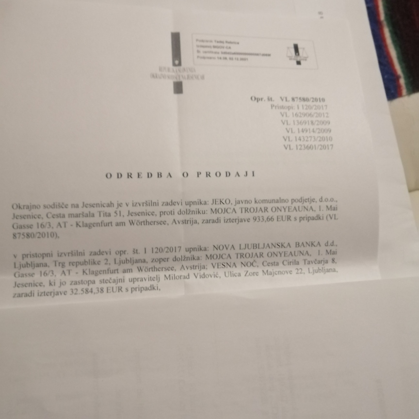 Zakaj se je Nočeva sploh znašla v situaciji, da se bo morala po štiridesetih letih izseliti iz svojega stanovanja? Zaradi namišljenega dolga v višini nekaj čez 930 evrov ZA kateri znesek je dokazano na sodišču leta 2014 dokazano pri sodnici, da je bilo poplačan. A JEKO zabeležil od nikoder dolg v višini 1500 evrov ter sprožil postopek na sodišču, da ji za poplačilo njenega dolga odvzamejo Nočevi stanovanje. Pri tem se je pridružila še NLB in podjetje Dominvest. Prav NLB si je domislila nov dolg Nočeve v višini 32 tisoč evrov. To pa pojmujejo s tem, da sta se na notarski pogodbi podpisali tako Vesna Noč kot njena hčerrka Mojca Trojar. Številko dolga pa so tolmačili s tem, da Nočeva v vsem tem času ni plačevala obresti za svoj kredit s strani NLB. Vse to po zaslugi tenkočutnih jeseniških kadrov Socialnih demokratov!