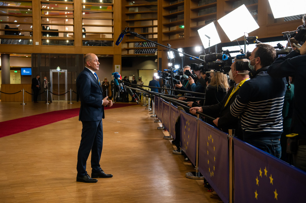 Ob prihodu na zasedanje je predsednik vlade v izjavi za tuje medije poudaril, da je danes pred voditelji in voditeljicami zelo pomemben sestanek. "Prvič, pomagati moramo ukrajinski vladi in ljudem, da se branijo, moramo jih podpreti tako s humanitarno, ekonomsko kot tudi vojaško pomočjo. Drugič, odločiti se moramo glede sankcij proti ruskim oblastem, kjer je pomembno, da občutijo, da je cena, ki jo bodo plačali za svojo agresijo, velika in da to ne bo nekaj takšnega kot sankcije ob napadu na Gruzijo ter zavzetje Krima. In tretjič, Ukrajini moramo dati pravo evropsko perspektivo. To bi se moralo zgoditi do leta 2030 najkasneje, zato sem skupaj s poljskim predsednikom vlade podpisal pismo, ki sva ga poslala kolegom in predsedniku Evropskega sveta, kjer to tudi predlagava, "je povedal premier in dodal, da ostri pristop glede širitve predlagata tudi glede Gruzije, Moldavije in Zahodnega Balkana. "Iz zgodovine zadnjih desetletij se moramo naučiti, da če se prostor demokracije, svoboščin, spoštovanja človekovih pravic in vladavine prava ne širi, se širi nekdo drug. Nekaj se moramo naučiti iz zgodovine, sicer bomo plačali visoko ceno," je bil jasen premier.