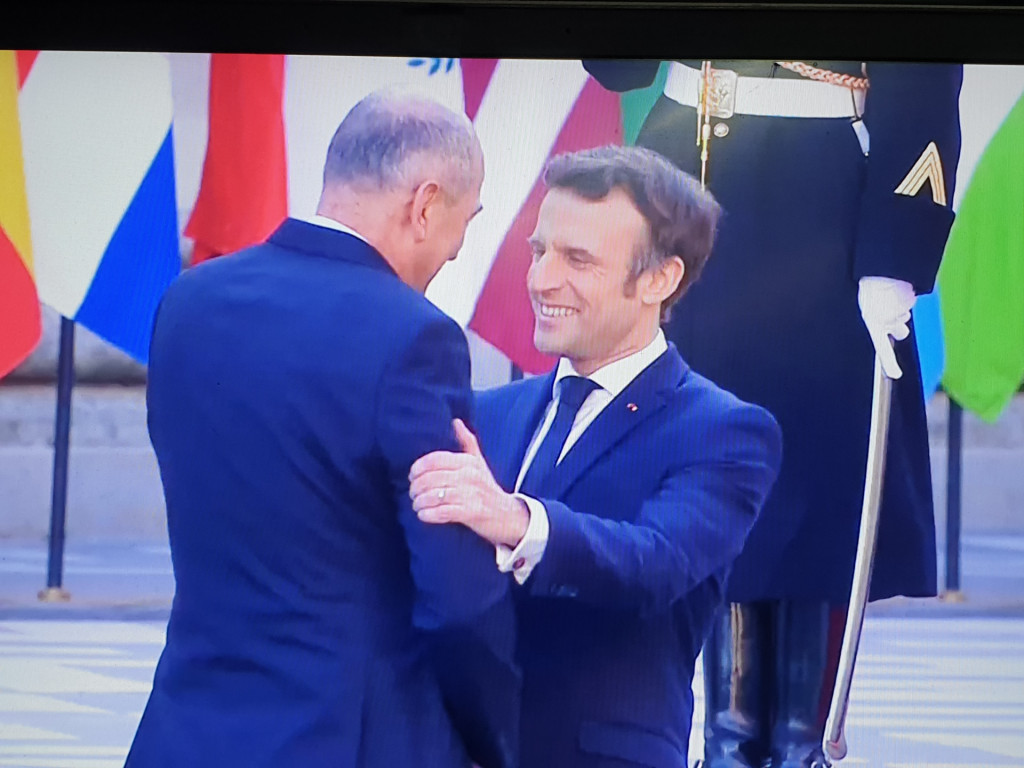 Predsednik vlade @JJansaSDS je prispel v Versailles, kjer ga je pozdravil predsednik @EmmanuelMacron. pic.twitter.com/MH7vaTjT7C