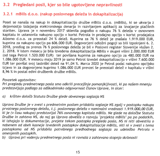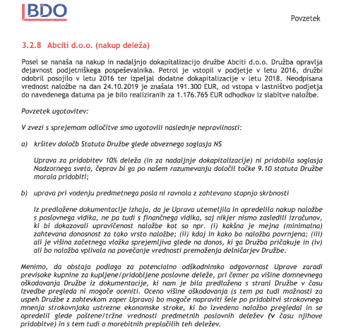 Na spletu smo našli poročilo revizijske hiše BDO, v kateri so pregledali trideset poslov v času Petroleve uprave, ko so glavno besedo imeli Berločnik, Vodnik in morebitni novopočeni finančni minister Igor Stebernak.