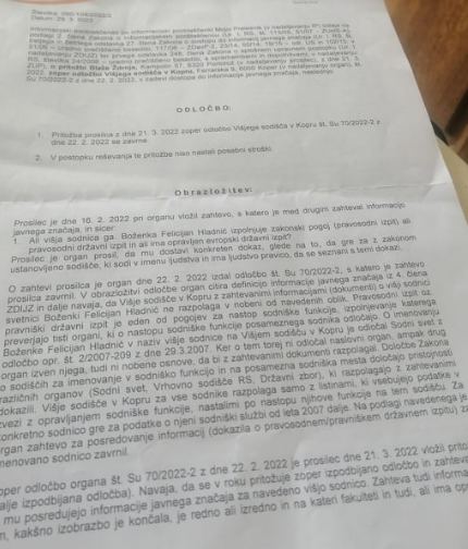 Na zahtevo Ždrnje sodišče dostavi podatke, ali sodnica Boženka Felicijan Hladnič vse pogoje, da lahko opravlja sodniško službo z ustrezno strokovno izobrazbo in pravosodnim izpitom. Stanuje pa v veliki hiši v Luciji na naslovu Kozinova ulica 17.
