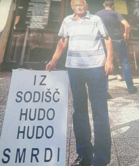Opozarjanje na krivico družine, ki je na sporen način izgubila svojo nepremičnino s strani sodnice Boženke Felicijan Hladnič. Na enak način s sponimi postopki želi Niko Varezič prilastiti nepremičnino v lasti Blža Ždrnje in Milene Tegeltije. (Foto: Arhiv Blaž Ždrnja)