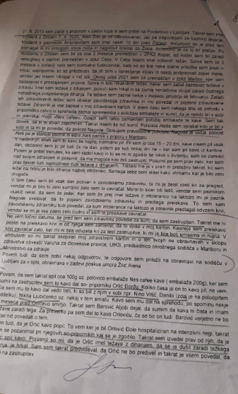 V nadaljevanju zapiše, da je opazil spremembo postavljenega lončka za kavo v svoji mariborski priporniški celici. Mehmatavič je izvedel, da je bil v njegovi celici xxxx xxxx xxxxx. Mehmatović je tudi ves čas zavračal odvzem krvi, saj po njegovem mnenju niso hoteli narediti analize glede zastrupitve krvi. Mehmatović je kavo še naprej pil, ne glede na to, da se zdravstvene težave niso prenehale.
