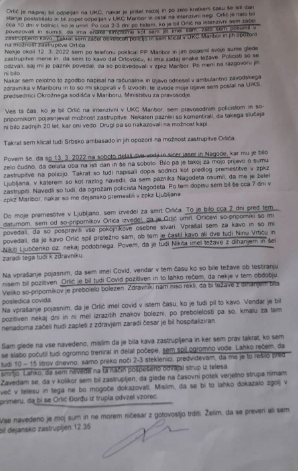 "To vem ker je bil Orlović Đorđe hospitaliziran na intezivni negi, takrat sem pozanimal pri njegovih so pripornikih kaj se je zgodilo. Takrat sem izvedel prav od njih, da je Orlić spil kavo. Pojasnili so mi, da je Orlič imel težave z dihanjem, da se je dušil zaradi težkega dihanja je hrkal. Sam sem takrat predvideval, da Orlič ne bo preživel in takrat je vsem povedal, da sumi na zastrupitev," je zapisano v kazenski ovadbi Mehmatovića.