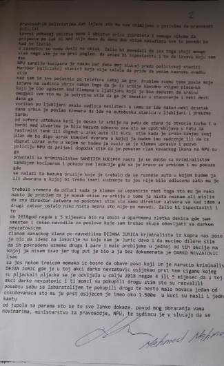 Tukaj si lahko preberete v pismu srbski ambasadi zapornika Mehmeda Mahmutovića, da sta sodelovala skupaj član kavaškega klana Darko Nezvatović in koprski kriminalist Dean Jurič. (Foto: Bralec Prava.si)