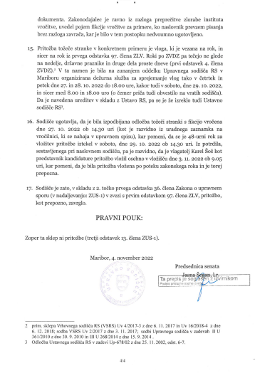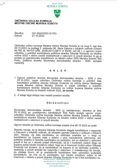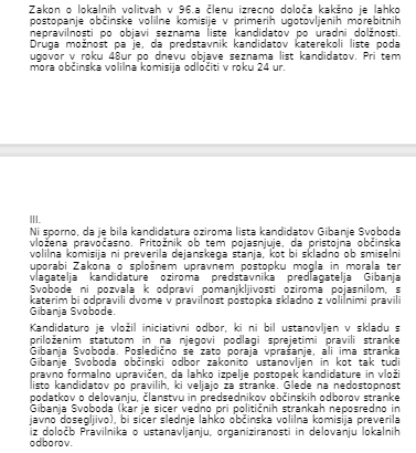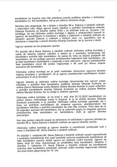 To pomeni, da sta bila vložena lista kandidatov za občinske svetnike in vlogo za župansko kandidaturo v MO Murska Sobota vložena v neskladju oziroma mimo pravil stranke Gibanje Svoboda. Se pravi v nasprotju z Zakonom o lokalnih volitvah.