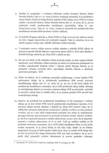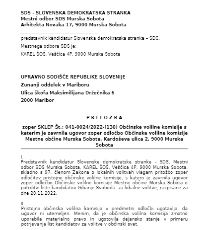 Pritožba murskosoboškega odbora SDS na Upravno sodišče Republike Slovenije: