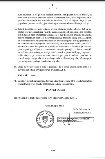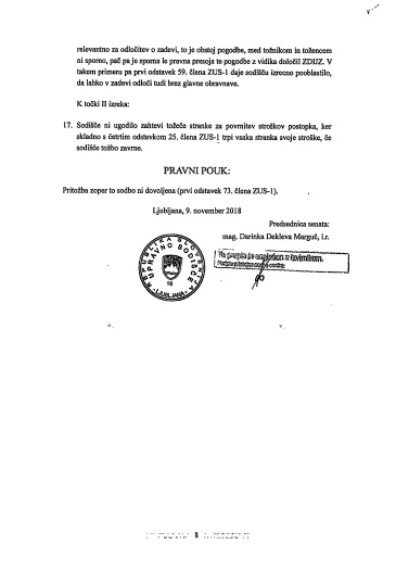 14. SPL ( 2018, tožečo stranko je zastopala ODVETNIŠKA DRUŽBA PIRC MUSAR & partnerji)