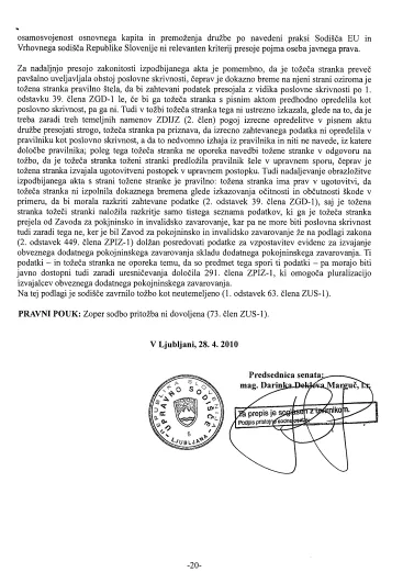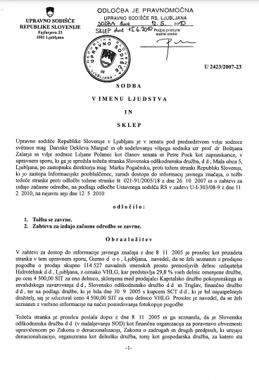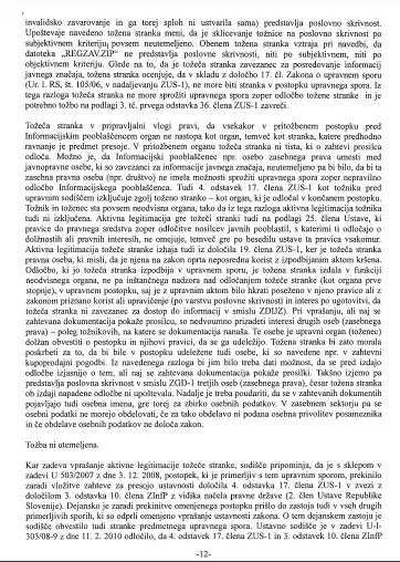12. SLOVENSKA ODŠKODNINSKA DRUŽBA (2010, sodba je bila izdana v času, ko je urad Informacijskega pooblaščenca vodila Nataša Pirc Musar)