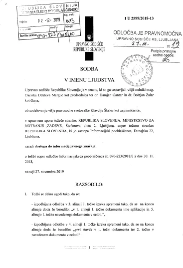 13. MINISTRSTVO ZA NOTRANJE ZADEVE (2019)