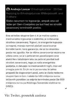 Dober članek o neupravičenosti enormnega dviga cen električne energije.Pohlepneži so prodajali el. energijo, ki je niso imeli.To je "logika" nesposobnih trgovčičev.IZGUBO pa smo socializirali.G. Jamnik je pa tudi genialni avtor dopolnilnega pokojninskega zavarovanja pri Modri zavarovalnici. Nateg 300.000 varčevalcev, ki naj bi dobili le svoj privarčevan denar ob upokojitvi izplačan na obroke. In zavarovalnica razpolaga z 2,1 miljardami eur.IN KDO JE KORISTNIK TEH SREDSTEV????????