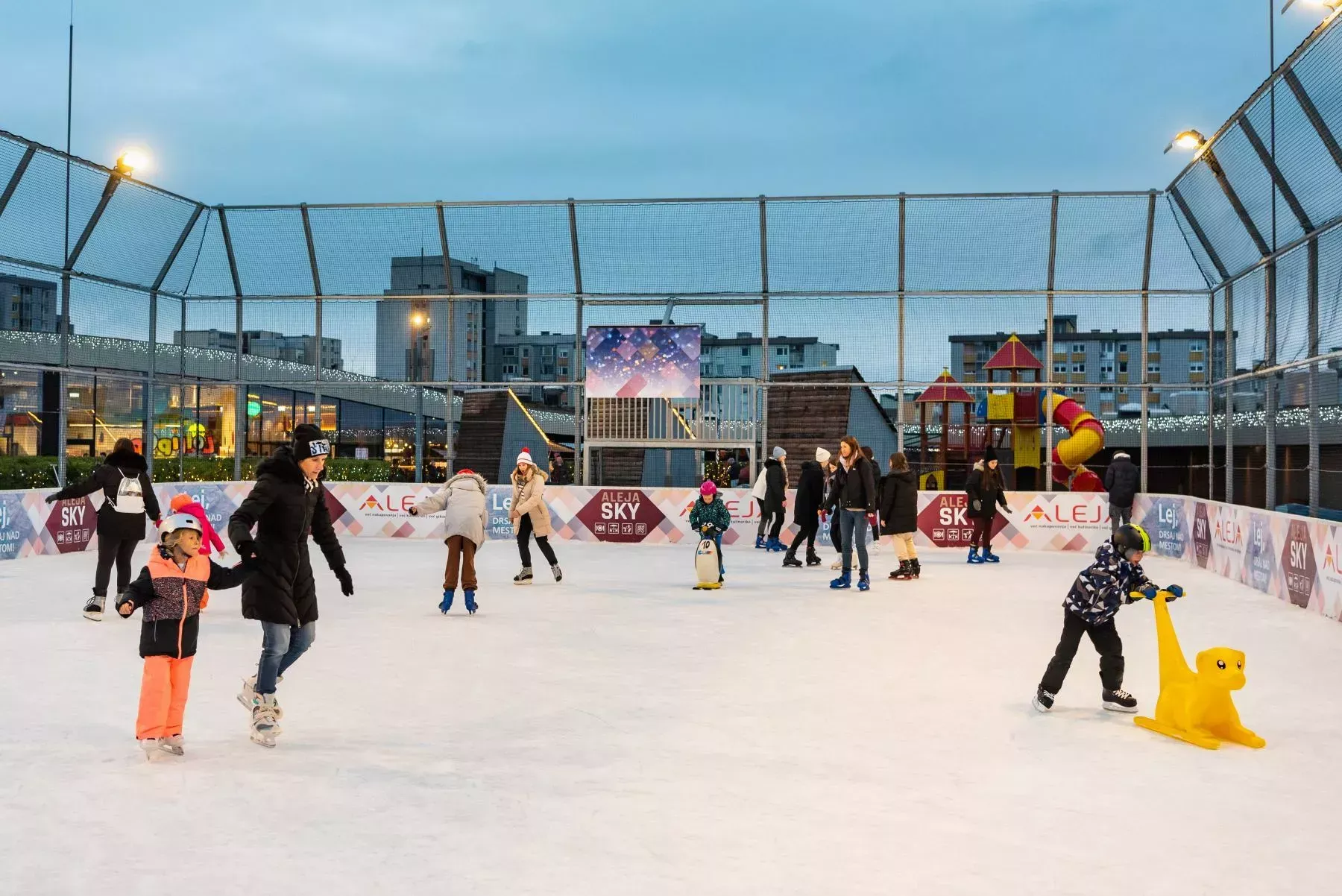 Zimske radosti na ALEJI SKY ostajajo, saj bo drsališče v primeru ugodnih vremenskih razmer odprto vse do nedelje, 12. februarja. Pričakujejo vas z več kot 1000 m2 ledenimi površinami in 140m dolgimi ledenimi stezami, ki se vijejo po večnamenskem igrišču. Drsališče je odprto od ponedeljka do sobote od 10. do 21. ure in ob nedeljah ter praznikih od 11. do 21. ure. Vstopnice za otroke, odrasle in družine so na voljo na blagajni drsališča, kjer si lahko izposodite tudi drsalke in pingvinčke. Ob sobotah je od 17. ure na voljo mini disco za najmlajše, ob 19. uri pa se bodo lahko v disco ritmih zazibali še vsi ostali. Ob nedeljah drsališče postane učilnica na prostem, saj se lahko s Pino Umek in prijatelji učite drsati. Čakajo vas tudi velika zimska znižanja in posebna akcija. Vsi, ki od danes v ALEJI opravite nakup nad 50 evri, imate pri nakupu družinske karte kar 50-odstotni popust.