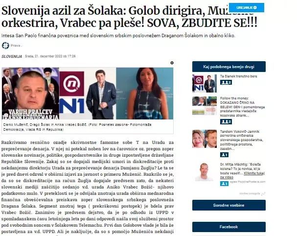 Produciranje medijskega spina portala Necenzurirano je naš medij že zdavnaj razkril v članku Slovenija azil za Šolaka: Golob dirigira, Muženič orkestrira, Vrabec pa pleše! SOVA, ZBUDITE SE! Nič novega, stara klasika. V članku pa smo tudi razkrili dokument, da se je Vrabec Božičeva za kratek čas zaposlila v eni izmed družb v lasti Dragana Šolaka v letih 2022 oz. 2021. Sama pa je tudi kot zaposlena sodelovala v preiskavah, vodenih proti Šolaku!
