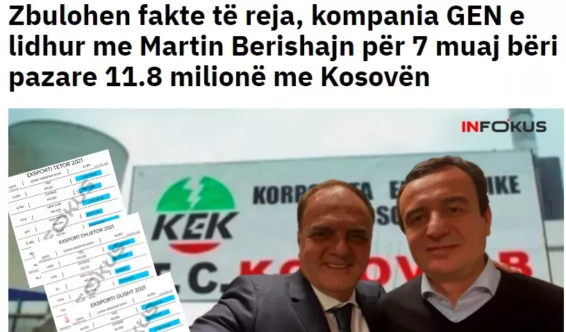 Zelo verjetno je vzrok biznisiranja med GEN-I Beograd in obema podjetjema Martina Berishaja tudi v podpisanem poslu med takratno upravo GEN-I pod vodstvom sedanjega predsednika vlade dr. Roberta Goloba in državno kosovsko družbo, Kosovsko energetsko korporacijo – KEK. GEN-I je podpisal pogodbo za leto 2021 in 2022. Vrednost pogodbe za leto 2021 je znašala 11,8 milijona evrov. Skoraj tolikšen znesek, kolikor so v letu 2021 iz slovenskega GEN-I nakazali na svojo albansko podružnico v Tirani. Tega posla GEN-I ni mogel izvesti brez pomoči "svetovalnih donacij" vidnemu političnemu predstavniku vladajoče kosovske stranke Albinu Kurtiju in brez pomoči Berishajeve diplomatske imunitete ter njegove diplomatske mreže na območju Zahodnega Balkana.