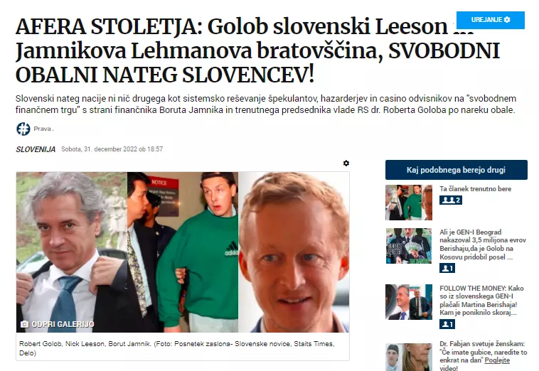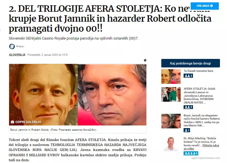 Kaj imajo skupnega nekdanji trikratni predsednik vlade Republike Slovenije Janez Janša, nekdanji nadzorniki Luke Koper iz časa prve Janševe vlade in vplivni gospodarstvenik Bojan Petan, ki spada v krog gospodarske-obveščevalnega kraka rdeče aristokracije? Vsi so se do konca življenja zamerili banksterskemu omrežju Boruta Jamnika in pravosodnemu omrežju izvirajoč iz sedaj likvidirane Splošne plovbe Portorož, ki ga že dlje časa obvladujeta odvetniški dvojec Velkaverh – Starman s svojimi podaniki v vrstah dela tožilstva (Specializirano državno tožilstvo- SDT), policije (gospodarski oddelki policije, SKP Koper) in sodstva (Okrožno in višje sodišče v Kopru, Vrhovno sodišče).Nekdanja predsednika Vrhovnega sodišča Republike Slovenije, Damijan Florjančič in Branko Masleša. (Foto: Posnetek zaslona-Nova24tv)Ena ključnih institucij za pregon organiziranega kriminala predstavlja Specializirano državNo tožilstvo. Vendar težava nastane, ko se sama institucija prične obnašati kot politična policija v slogu nekdanje Službe državne varnosti. Zato nas ne morejo čuditi primeri v preteklih desetih, petnajstih ali dvajsetih letih, ko so kot domine padali nekateri razvpiti primeri v državi predvsem na višjih sodnih inštancah v Evropi. Dokler plačuješ, si svoboden. Ko se plačevanje dote preneha, se hitro znajdeš pred roko pravice.Foto: Prava.siZdaj se je v isti zanki znašel Bojan Petan v zadevi Marina Portorož- Terme Čatež. Vendar kdor si je zelo pozorno prebral ZAKON O FINANČNIH KONGLOMERATIH bo hitro ugotovil, da v tej zadevi niso naredili popolnoma nič nezakonitega. Le finančna sredstva so se razporejala znotraj holdinga.Foto: Posnetek zaslona- Uradni list.Ker je Petanov holding Državna založba Slovenija razporejala z več 100- milijonskimi sredstvi za upravljanje holdinga, je tudi znotraj družb v njihovi lasti prihajalo do tega, da so si posamezne družbe med sabo nakazovale tudi 30 milijonov evrov, da so lahko katero izmed družb, kjer so bili prej le delni lastniki postali večinski lastniki.Foto: Posnetek zaslona- Info360Petan ni delal nič drugače kot to počnejo holdingi v lasti najbogatejšega Slovenca Dareta Južne ali pa moji nekdanji sosedje iz moje vasi, družina Polanič. Vendar če nisi naš, boš dobil PEKEL! To se je v preteklosti zgodilo tako z imperiji Staneta Valanta, Janeza Bohoriča, Igorja Bavčarja ali pa podjetnika iz Celja s priimkom Zupanc. V kateri skupini bo pristal Petan?O tem primeru bomo v našem mediju pisali enkrat v prihodnje, kjer se bo razkrila vsa ugrabljenost slovenskega bančnega in pravnega sistema. (Foto: Posnetek zaslona-Finance)Ali se spet ponavlja stara zgodba? V našem mediju smo že večkrat opozarjali na delovanje Specializiranega državnega tožilstva, ki velja za samostojno in neodvisno enoto tožilstva znotraj Vrhovnega državnega tožilstva. Kar bi naj izgledalo kot neodvisen boj in preganjanja vseh tistih, ki so zagrešili kaznivo dejanje se je spremenilo dobesedno DRŽAVO V DRŽAVO! znotraj tožilske veje oblasti.Foto: Prava.siKaj smo že opozarjali v našem zapisanen članku z naslovom Zakaj je primer MILOVIČ ŠOLSKI PRIMER IZVAJANJE SELEKCIJE NA TRGU S STRANI KRALJICE POSTOPKOV-TOŽILSTVA GROBARJEV SLOVENIJE? Z dne 19. april 2024:»Primer Milović le dokazuje, da kraljica postopkov-tožilstvo po naročilu naročnikov, ki spominjajo na organizirano kriminalno združbo akterjev grobarjev slovenskega gospodarstva in politike VSEH IDEOLOŠKIH BARV izvaja selekcijo na trgu. »Verjetno so to na sebi najbolj občutili nekdanji nadzorniki Luke Koper, ki veljajo za prve obsojene nadzornike v Sloveniji. Vendar za zadevo, kjer so popolnoma NEDOLŽNI!Foto: Prava.siLahko pa bi kraljica postopkov-tožilstvo malce pogledala delovanje posameznih članov Združenje nadzornikov Slovenije, kjer je predsednik Gorazd Podbevšek, višji član uprave Slovenskih železnic in dolgoletni kader bansketerskega omrežja Boruta Jamnika. Seveda ne bo, ker je tudi iz njihove strani UGRABLJENA!Foto: Posnetek zaslona- Nova24tvVerjetno je to na sebi občutil tudi trikratni predsednik vlade in dolgoletni predsednik stranke Slovenske demokratske stranke Janez Janša. Kar nekaj procesov je doživel na svoji koži v času samostojne Slovenije. Patria, Trenta in prestitutka. Zakaj je bil v dveh primerih obsojen, v enem primeru pa je šele Ustavno sodišče razveljavilo sodbo si lahko odgovorite sami.Foto: Prava.siMi smo že v članku z naslovom Zadeva Trenta: Ali bo večnim scenaristom "ki jih ni v sodni dvorani" spet uspelo? Kdaj se bo to prenehalo!!! OPROSTITEV!!! zapisali sledeče:»Kdaj bo slovensko pravosodje nehalo slediti pripravljenim sodnim procesom "spakiranih na USB-ključkih"za proti tistim, ki jih smrtno sovražijo zaradi njihovih političnih idej ali pa proti posameznikom, ki so svoj kapital vložili v "napačen projekt". Bojan Petan doživlja isto usodo kot Janez Janša! Oba sta se do smrti zamerila banksterskemu omrežju Boruta Jamnika in neformalni usihajajoči skupini KOMANDOS, ki je ugrabila ključne zvode pravosodja s kadri SPLOŠNE PLOVBE PORTOROŽ! PIKA. DOKONČNA PIKA!Foto: Prava.siKako je Bojan Petan bil dolgoletni varovanec obeh OBALNIH VPLIVNIH OMREŽJIH? Kdo je napisal ovadbo?Enes Lojo je še eden izmed posameznikov, ki je bil zvest ideji neformalne skupine Komandos, na katere je opozoril nekdanji direktor Splošne plovbe Viljem Volk. (Foto: Posnetek zaslona-Pozareport)Ali bo Bojan Petan spoznal resnico slovenskega pravosodja? Kot kaže, se trenutek resnice nezadržno približuje. O Bojanu Petanu je bila realno v zadnjih dveh letih skoraj popolna tišina, razen ko se je pisalo o njegovih obalnih poslih (teniška igrišča v Portorožu, Žusterna).Foto: Prava.siPetan, ki je dlje časa mislil, da je zavarovan pred obema kriminalnima združbama, bo, kot kaže, spoznal bridko resnico. Kriv pa si je popolnoma sam – kaj pa uboga oranžne »zares« ultra svetovalce z Dolenjske, ki se igrajo kmete na Obali.Velik i