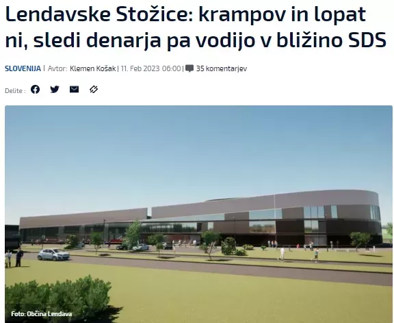 Spletni medij N1 Slovenija je pred nekaj dnevi objavil članek z naslovom Lendavske Stožice: krampov in lopat ni, sledi denarja pa vodijo v bližino SDS. V članku so poudarili, da bi se projekt moral pričeti že leta 2020, a sedanje vodstvo občine Lendava še vedno ni pripravilo finančne konstrukcije za projekt gradnje večnamenske športne dvorane. Še več, v članku odkrito namigujejo, da so v zgodbo vpleteni vidni predstavniki Slovenske demokratske stranke. Občina Lendava je načrtovala, da bo nova večnamenska športna dvorana postavljena na zemljišču ob lendavski srednji šoli, vendar je bil del zemljišča v privatni lasti. Jeseni leta 2018 je zemljišče kupilo podjetje FlawlessCode, katerega lastnik je Primož Kokot. Ta je brat vidnega člana SDS Tomaža Kokota, nekdanjega predsednika uprave Pošta Slovenija. V članku novinar Klemen Košak navaja, da je sedanje vodstvo lendavske občine odkupilo dobrih 15.000 kvadratnih metrov veliko zemljišče po ceni 581 tisoč evrov.