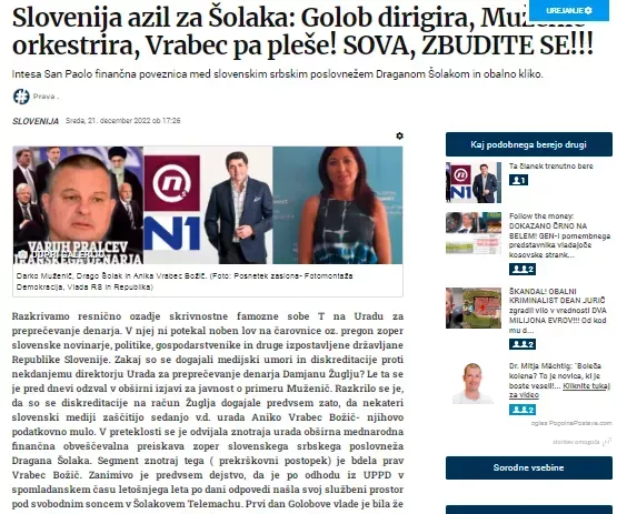 V našem mediju smo že pred časom napisali članka z naslovom DESANT IZ OBALE NA URAD ZA PREPREČEVANJE PRANJE DENARJA! Razkrivamo osebe za reševanje vojaka Darka, operativca Ljuba Volmuta in Slovenija azil za Šolaka: Golob dirigira, Muženič orkestrira, Vrabec pa pleše! SOVA, ZBUDITE SE!!!.