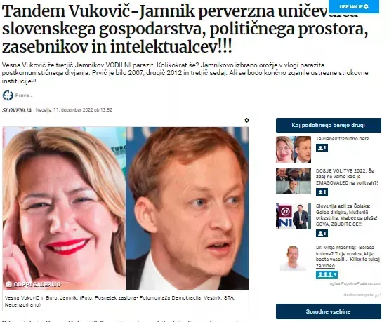 Velikokrat je bil režiser teh člankov nihče drug kot sveži član uprave SID banke, dolgoletni predsednik Modre zavarovalnice Borut Jamnik. To je avtorju članka zaupal nekdanji visoki predstavnik AUKN, ko je bil na obisku Jamniku, le ta pa je zaključeval s pisanjem članka. Delovanje Jamnika in Vesne Vukovič smo zelo natančno v našem mediju razkrili v članku z naslovom Tandem Vukovič-Jamnik perverzna uničevalca slovenskega gospodarstva, političnega prostora, zasebnikov in intelektualcev!!! . Pa tudi eden najbolje obveščenih novinarjev v Sloveniji Bojan Požar je že večkrat razkril, da je Borut Jamnik osrednji vir Vesne Vukovič.