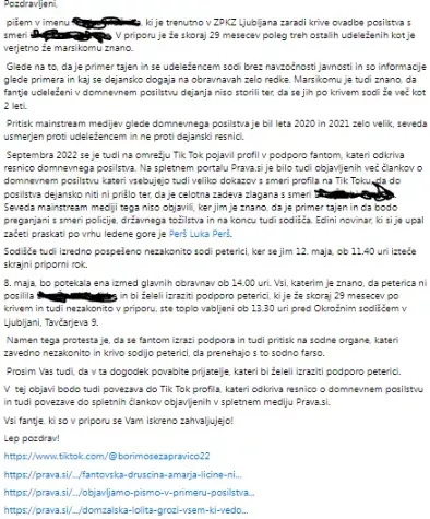 Septembra 2022 se je tudi na omrežju Tik Tok pojavil profil v podporo fantom, kateri odkriva resnico domnevnega posilstva. Na spletnem portalu Prava.si je bilo tudi objavljenih več člankov o domnevnem posilstvu kateri vsebujejo tudi veliko dokazov s smeri profila na Tik Toku, da do posilstva dejansko niti ni prišlo ter, da je celotna zadeva zlagana s smeri xxxx. Seveda mainstream mediji tega niso objavili, ker jim je znano, da je primer tajen in da bodo preganjani s smeri policije, državnega tožilstva in na koncu tudi sodišča. Edini novinar, ki si je upal začeti praskati po vrhu ledene gore je Luka Perš.