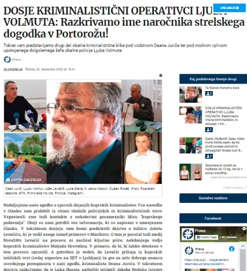 V našem mediju smo dne 18. avgusta 2022 in 22. septembra 2022 objavili članka z naslovoma DOSJE KRIMINALISTIČNI OPERATIVCI LJUBA VOLMUTA: Razkrivamo imena kriminalistov, ki delujejo v interesu OBALNEGA MEHANIZMA!!! in DOSJE KRIMINALISTIČNI OPERATIVCI LJUBA VOLMUTA: Razkrivamo ime naročnika strelskega dogodka v Portorožu! razkrili sledeča dejstva: