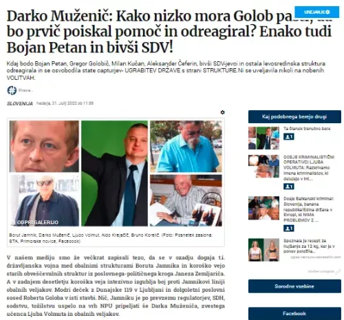 "V našem članku z naslovom Darko Muženič: Kako nizko mora Golob pasti, da bo prvič poiskal pomoč in odreagiral? Enako tudi Bojan Petan in bivši SDV! z dne 31. junija 2022 smo razkrili ključne igralce. Večino ključnih potez v slovenski policiji, tožilstvu in sodstvu se dogaja iz Obale. To se dogaja že vsaj trideset let. Ključno vlogo igrajo predvsem policijski, sodniški in tožilski kadri iz bazena Splošna plovba Portorož. Ali z drugimi besedami, kadri tesno povezani z Aldom Krejačičem, Antonom Karižem in Egonom Bandljem... Ljubo Volmut je tista oseba, ki stoji za večino napisanih kazenskimi ovadbami proti političnim in gospodarskim nasprotnikom obalnega omrežja. To je enkrat javno povedal tudi predsednik SDS-a Janez Janša. Vendar Volmut tesno povezan z omrežjem Splošne plovbe. Tako je njegov svak bil direktor hčerinskega podjetja Splošne plovbe v tujini, Splošne plovbe Singapur. Preko tega podjetja pa so se izvajale različne finančne mahinacije. Z veseljem vse zgoraj besede potrdimo, saj hranimo za vse to dokaze v uredništvu. Volmut pa je vedno imel postavljene ljudi v vrhu PU Koper, da so lahko nadzorovali vse in jih pri njihovih poslih ni motil popolnoma nihče. Predvsem pri trgovini z drogo (kokain, heroin itd..). Ključni vlogi sta igrala Alenka Drolc in Dean Jurič. Na oddelku gospodarskega kriminala pa Darko Muženič, sedanji vodja NPU.... Kdo sploh je Dean Jurič? Nihče drug, ki si je s skupino zvestih sodelavcev podjamril koprsko in s tem tudi slovensko policijo. Potrebno je vedeti, da je Juričeva skupina aktivna že vsaj petnajst let in vodena s strani Ljuba Volmuta. Kdo so ključne osebe Juriča?To so Dušan Ribaš, Mitja Kirbiš, Dean Grandič in žal vse kaže naivna kriminalistka Heidi Fluher. Vse te obremenjajoče podatke razkrila ovadba Davida Klemenca," smo zapisali v naših člankih.