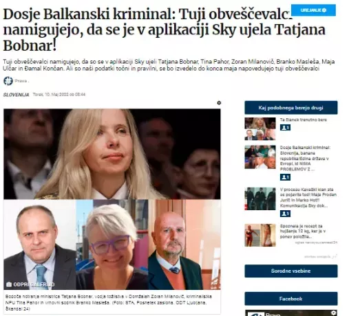 V zgoraj navedenem našem članku Dosje Balkanski kriminal: Slovenija, banana republika! Edina država v Evropi, ki NIMA PROBLEMOV Z DROGO IN PRANJEM DENARJA! smo tudi razkrili, kdo vse naj bi se ujel izmed vrst policije in tožilstva v t.i. Sky aplikacijo. Nekatera imena smo že razkrili aprila 2021, nekatera lansko leto. Med njimi so se znašli policist/kriminalist Rok Cvetko, kriminalistka NPU Tina Pahor, domžalski tožilec Zoran Milanovič, ljubljanska tožilka Maja Ulčar, nekdanji kriminalist iz Kamnika Đamal Kočan. Tuji obveščevalni viri pa so nam namiginili, da sta se ujela v Sky aplikacijo tudi nekdanji predsednik Vrhovnega sodišča Branko Masleša in nekdanja notranja ministrica Tatjana Bobnar. Upajmo le, da se naši podatki ne bodo izkazali nikoli za resnične, saj bi to bil eden hujših škandalov v zgodovini naše države! Je pa avtor članka v gostovanju v oddaji Tema dneva v decembru 2021 povedal, da je bilo v obsežnih kriminalističnih akcijah po Balkanu zaseženih 4000 Sky telefonov, od tega 800 v Sloveniji.