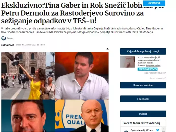 Zdaj je več kot očitno znano, zakaj se je zgodila cenzura zadnje Tarče. Kljub temu da sta hoteli direktorica Televizije Slovenije Ksenija Horvat in Polona Fijavž s pomočjo izjav Društva novinarjev Slovenije, predstavnika Glasa ljudstva Jaše Jenulla in nekaterih osrednjih medijev zgodbo spreobrniti v popolnoma drugo smer – da je oddaja Tarča postala neprofesionalna in da ni vredna javnega servisa.Foto: Posnetek zaslona- N1 SlovenijaRes je, oddaja Tarča je verjetno že leto dni pod vodstvom depolitizirane elite tarča kritik. V času desnih vlad pomeni kritika Tarče konec neodvisnega novinarstva in rušenje »fašizma«, v času levih vlad pa pomeni kritika Tarče, da je uredništvo neodgovorno, Erika neprofesionalna in da so oddaje katastrofalne.Foto: Posnetek zaslona- Info360Ampak ekipa Tarče od svoje prve oddaje počne isto. Verjetno bodo to počeli tudi v prihodnje. Zato je prav, da imamo slovenski državljani vsaj tedensko možnost spremljati 70- minut raziskovalnega novinarstva na RTV Slovenija.Zelo verjetno je bil ključen razlog odpovedi Tarče zgodba o dopustovanju Roberta Goloba in njegove sedanje žene Tine Gaber Golob na hrvaškem Ugljanu leta 2025. Ekskluzivne informacije sta razkrila novinarja Zanima.me Mirko Mayer in Peter Merše v epizodah Tedenskega in Special safarija, Mayer pa je to zapisal še v članku z naslovom Razkrita »zlata kletka« Roberta Goloba: s Tino Gaber ga gostijo na Ugljanu, živi pri njih v Trnovem. Kdo nadzira njegovo intimo in državne milijone?.Foto: Posnetek zaslona-Zanima.meZgodba je dobesedno šokantna. Mogoče odgovarja še na eno misteriozno vprašanje – kdo v resnici plačuje eno najdražjih najemnin v Sloveniji in ali je to lahko povezano s sklenjenimi posli v hčerinskih družbah Slovenskih železnic.Že v preteklosti se je poročalo, da bi glede na podatke morala zakonca Golob–Gaber plačevati 4.500 evrov mesečne najemnine. Kljub temu da vsaj po javno dostopnih podatkih zakonca Gaber mesečno ne zaslužita več kot 5 tisoč evrov neto, se postavlja vprašanje, na kak način se najemnina plačuje.V tem stanovanjskem kompleksu v Trnovem živita zakonca Golob Gaber. Ali res plačujeta najemnino v višini 4500 evrov ali pa imata popust, ker se poznata osebno z lastnikom Darko Perkom? (Foto: Posnetek zaslona-X)Že lani so Slovenske novice in tudi Tarča poročale, da je stanovanje v Trnovem last podjetja Eltim podjetnika Darka Perka, tudi člana SDS in osebnega prijatelja Janše. Osrednji mediji pa so ga leta 2023 predstavljali kot enega izmed pobudnikov vaških straž na območju Ivančne Gorice. Mayer pa ga označuje za podjetnika, ki odlično sodeluje tako z levo kot z desno usmerjenimi ljudmi. Po dobrem letu dni bi bil lahko misterij skrivnostnega plačevanja najemnine razrešen. Vsaj po poročanju Zanima.me je zgodba zelo verjetno potekala takole: Tina Gaber Golob je v preteklosti delala tudi v eni izmed hčerinskih družb Slovenskih železnic, kjer je bil zaposlen tudi Miha Piškur, znan po svojem podjetju DC Limited, ki je bilo večkrat razkrito v zadnjih Tarčah. Prav Piškur naj bi Gabrovi omenil stanovanje v Trnovem v lasti Perka.Že večkrat so se pojavljala vprašanja, na kak način zakonca Golob–Gaber plačujeta najemnino. V preteklosti se je med drugim domnevalo, da bi se lahko najemnina plačevala neposredno z računa podjetja Star Solar v lasti predsednika vlade dr. Roberta Goloba, kar je še ena dolgoletna sporna zgodba trenutnega premierja.Ali je zaradi stavbe v Mostah bila odpovedana Tarča? Po poročanju Mayerja in Meršeta gre za nič manj kot novo verzijo Litijske, samo tokrat v glavni vlogi mobilna postavljena stavba v Mostah za hčerinsko podjetje SŽGP. (Foto: Posnetek zaslona-Zanima.me)Kot razkriva Mayer, je bilo omenjeno Perkovo podjetje vpleteno v enega izmed poslov Slovenskih železnic (zadeva Moste), kjer naj bi se zgodila preplačila v višini več milijonov evrov na račun podjetja Eltim. Sodeč po fotografijah lahko to afero gladko poimenujemo še ena afera v slogu litijske – samo da tokrat večinski osrednji mediji niso zagnali vika in krika, ker je denar prišel v »prave roke«. Tam je bil nakup stare dotrajane stavbe, tukaj pa gradnja mobilne stavbe za 8 milijonov evrov.Ob vsem tem sta novinarki Preiskovalno.si Nataša Markovič in Barbara Pence našli kar nekaj indicev, da slovenska javnost lahko dvomi v pristnost računa za plačane počitnice v Ugljanu sedanjega zakonskega para Golob–Gaber.Foto: Posnetek zaslona-Preiskovalno.siTemu dodajte še odkritja v državnem Darsu, kjer so se razkrile nove sumljive informacije o bratih Ribič pri gradnji nove stavbe Darsa, ki se je podražila že za več kot 10 milijonov evrov, ter preobrazbo ministrstva za kmetijstvo, gozdarstvo in prehrano v vegansko/vegetarijansko ministrstvo po okusu soproge predsednika vlade Roberta Goloba – in jasno je, zakaj so še enkrat nikogaršnji hlapci dokazali, kaj pomeni depolitizirana medijska svoboda.Foto: Posnetek zaslona-Preiskovalno.siHvala lepa, da se je zgodila Tarča. Nikoli več pripadniki nikogaršnjih hlapcev, podprti s sprijenim kapitalom globalistične kabale ( primer Open Society- družina Soros), ne jočite o medijski svobodi v naši državi. Zdaj ste dokazali, da ste pripravljeni žrtvovati tudi osebo in oddajo, ki ste ji sami s svojo medijsko mašinerijo v službi tranzicijskega režima ustvarili podobo nedotakljive oddaje.Foto: Posnetek zaslona-PortalplusZdaj se je izkazala kruta resnica, da so oddajo Tarča in njeno voditeljico Eriko Žnidaršič izkoristili za svoje pritlehne osebne cilje. Tukaj sta Polona Fijavž in Ksenija Horvat prvi predstavnici #Nikogaršnjihhlapcev, ki sta v preteklosti stali v prvih vrstah in opozarjali na pritiske na Tarčo v času zadnje Janševe vlade in na delovanje takratnega direktorja Televizije Slovenije Uroša Urbanije. Zdaj pa hočeta uničiti edino raziskovalno oddajo (ne glede na kritike ali pohvale), ki obstaja na RTV Slovenija.Svojo potezo sta potegnili 