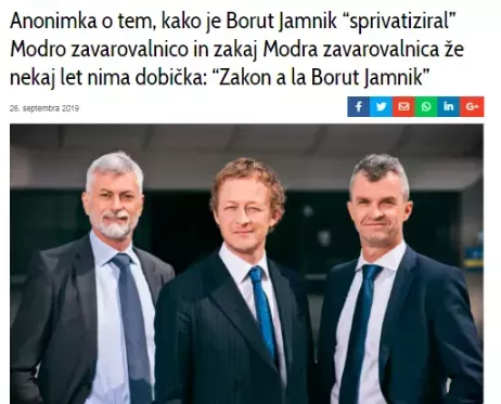 Eden najboljših člankov o Modri zavarovalnici je objavil spletni medij Topnews v članku z naslovom Anonimka o tem, kako je Borut Jamnik “sprivatiziral” Modro zavarovalnico in zakaj Modra zavarovalnica že nekaj let nima dobička: “Zakon a la Borut Jamnik” objavljen dne 26. septembra 2019. Na omenjeni članek so v Modri zavarovalnici zagrozili s tožbo, a do nje ni prišlo. So že vedeli zakaj je bolje, da se zadeva ne znajde na sodišču.