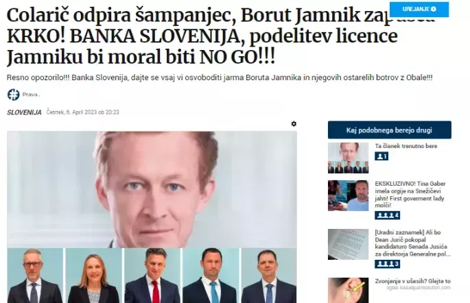 Že 16. junija 2023 je novinar Bojan Požar delil sledeče sporočilo na svojem Twitter profilu, kjer je delil sms sporočilo poznavalca poslovnega delovanja bančnega vajenca Boruta Jamnika: