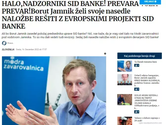 Zelo zanimivo je bilo dejstvo, ko smo v lanskem decembru objavili članek HALO,NADZORNIKI SID BANKE! PREVARA VSEH PREVAR!Borut Jamnik želi svoje nasedle NALOŽBE REŠITI Z EVROPSKIMI PROJEKTI SID BANKE dan pred sejo NS SID banke, si ga nadzorniki zelo verjetno niso upali mu podati mandata. To so storili teden dni kasneje, ko nihče ni vedel, kdaj bodo imeli sejo. Isto mu je Banka Slovenija podelila licenco zelo potiho in mimo javnosti že v letošnjem februarju. Jamnik pa je mesto predsednika uprave SID banke zasedel v mesecu aprilu.