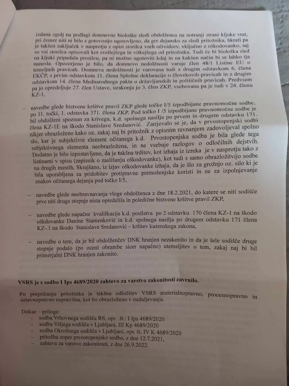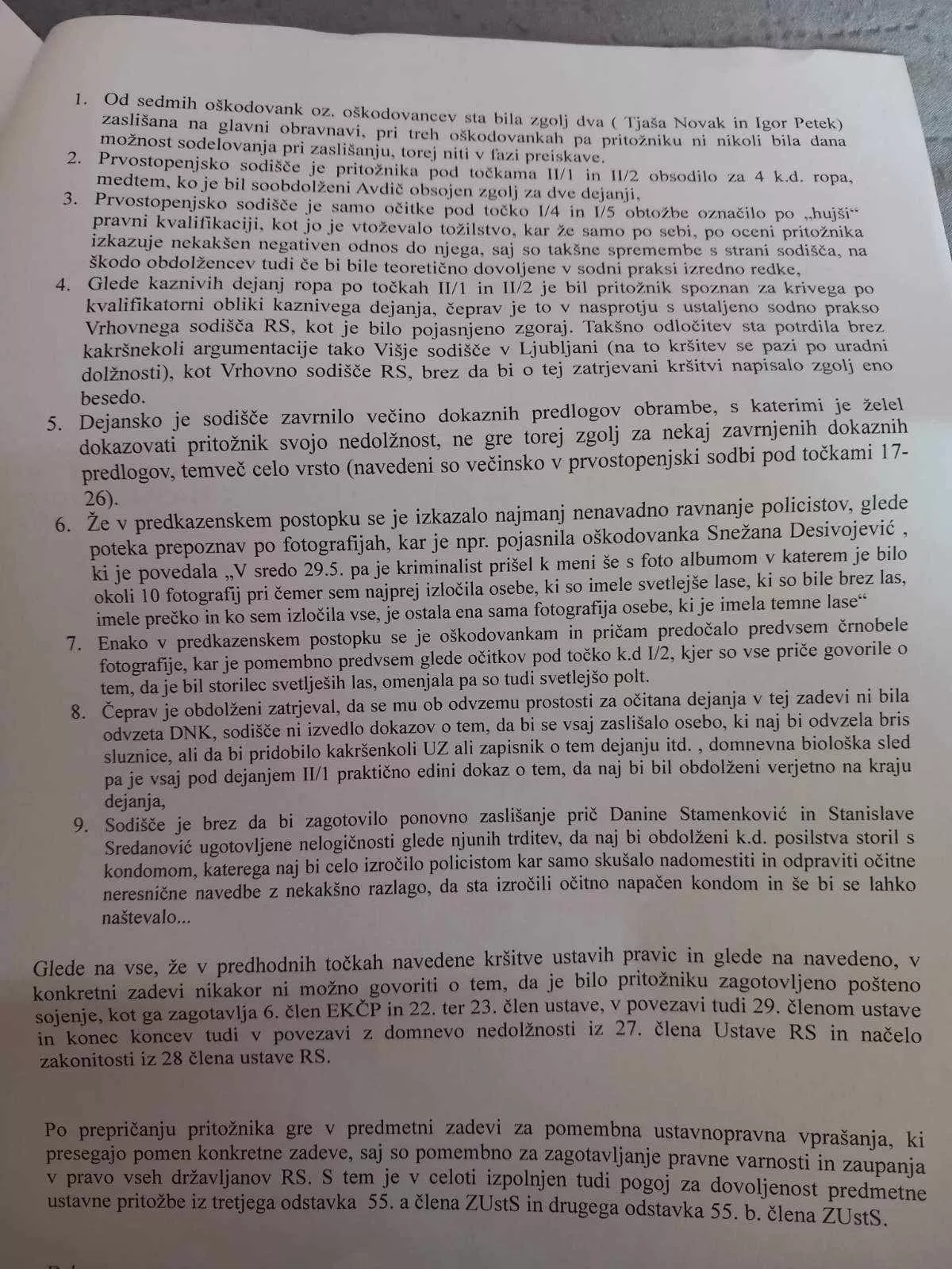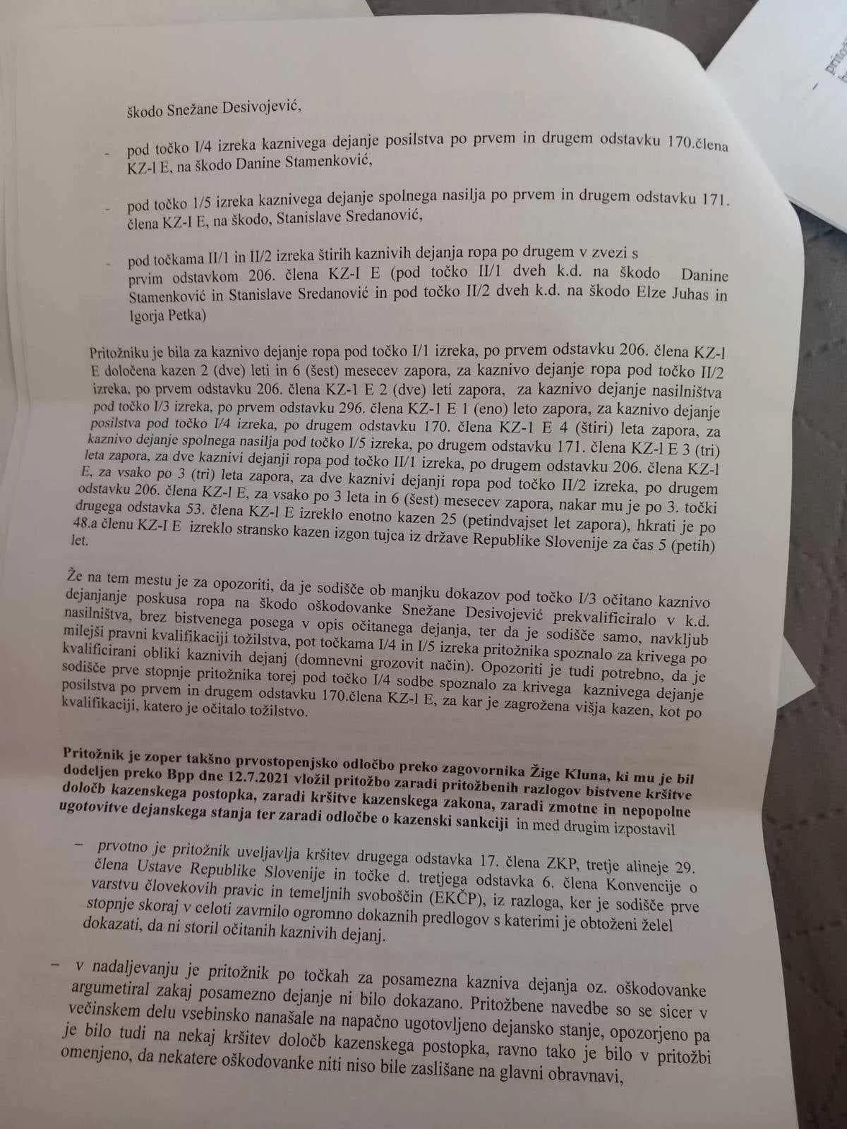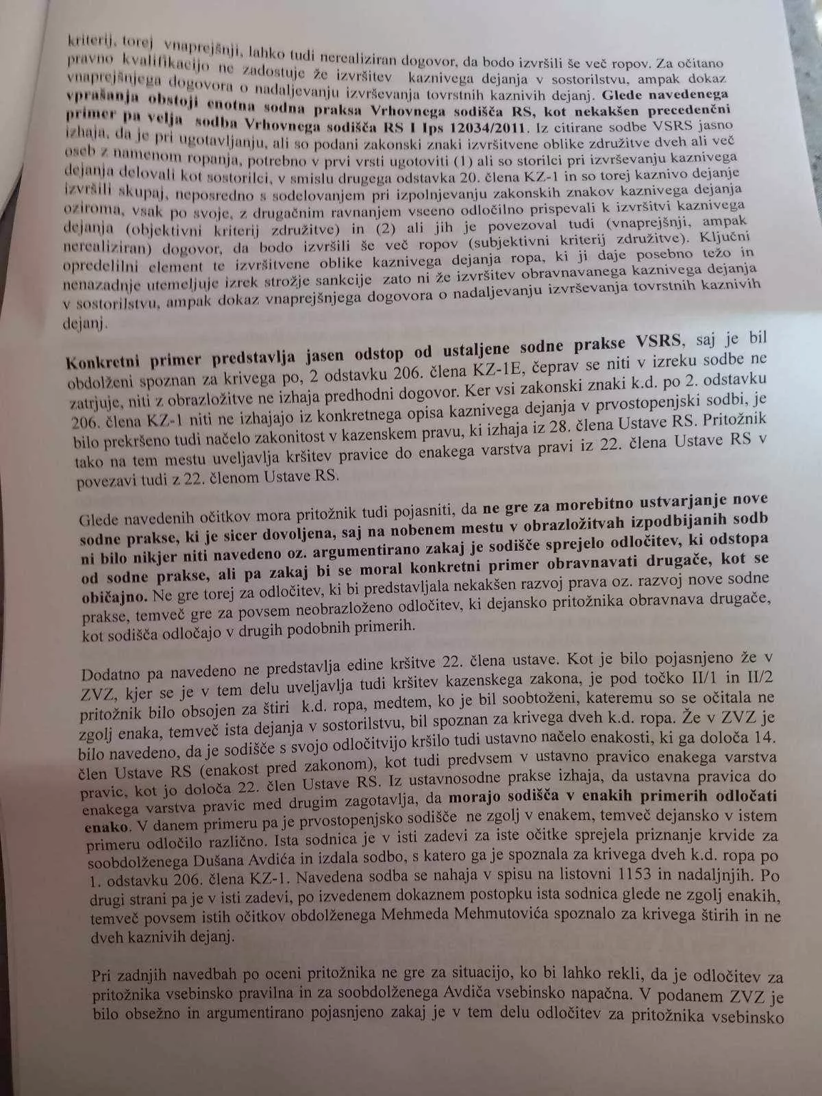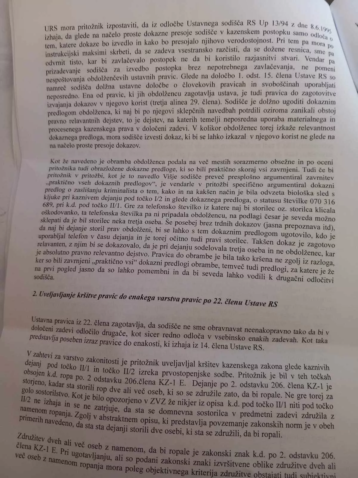 Vendar se v določenem delu besedila jasno nakazuje, da za določena obsojena kazniva verjetno sploh ni bil zraven. Mislimo pa, da bi moral biti obsojen za nižjo zaporno kazen. Bomo videli, kako bo odločilo Ustavno sodišče.
