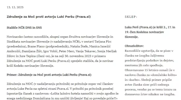 V našem mediju smo v preteklosti ugriznili v kislo jabolko v primeru domžalske peterice, kjer smo kot EDINI MEDIJ V DRŽAVI!!!! napisali resnico. Za "nagrado", ker sem v primeru domžalske peterice EDINI MEDIJ V DRŽAVI NAPISAL RESNICO dobil SRAMOTNO OBSODBO Novinarskega častnega razsodišča! Ker sem napisal resnico, ste me obsodili! HVALA FALANGI IZ DRUŠTVA NOVINARJEV SLOVENIJE!!! Plus tega, sploh nisem ČLAN VAŠEGA DRUŠTVA! Na te bedaste "obtožbe" sploh nisem odgovarjal. To je možno samo v naši državi. Napišeš resnico, pa si kvazi novinarsko obsojen. Pa dobro, če ste si s tem potešili vaše želje, tudi okej.