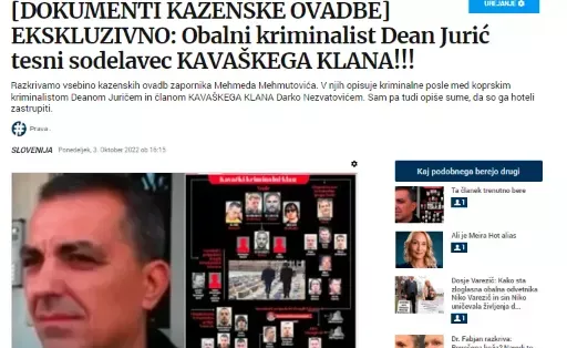 V našem mediju smo v člankiu z naslovom [DOKUMENTI KAZENSKE OVADBE] EKSKLUZIVNO: Obalni kriminalist Dean Jurić tesni sodelavec KAVAŠKEGA KLANA!!! razkrili z dokumenti, da so si akterji obalne kriminalistične klike pri svojem delu pomagali z vprašljivimi metodami dela. Eno najbolj odmevnih zgodb je razkril Mehmed Mahmutović.