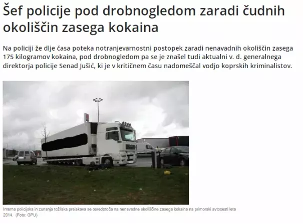 Razkrivamo uradni zaznamek v najnovejši obalni narko kriminalistični aferi, ki jo je pred dnevi razkril časopis Dnevnik. Le ti so poročali, da je sedanji v.d. GPU Senad Jusić pod drobnogledom notranjevarnostnega postopka zaradi zasega 175 kilogramov kokaina. V našem mediju ekskluzivno razkrivamo enega izmed uradnih zaznamkov. Poleg Juriča pa je v zaznamku izpostavljen nekdanji kriminalist Matjaž Hrovatin. A je Hrovatin v obsežnem pričanju decembra 2022 predstavil celotni vidik zgodbe. Celotno njegovo izjavo o tem dogodku pa je bila sedaj objavljena v Slovenskih novicah v članku z naslovom Dilerjem pomagali kriminalisti?!.