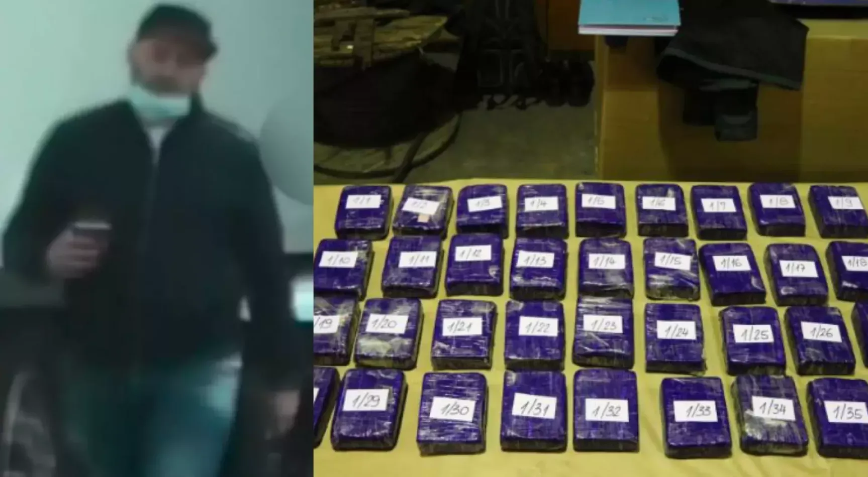 Darko Nevzatović in zaseženi zavojčki heroina. (Foto: Bralec Prava.si in posnetek zaslona-Vestnik)