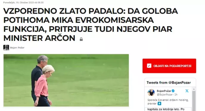 Zato je že dlje časa v pripravi načrt. Robertu Golobu je pomembna samo energetika in nič drugega. Z izpolnitvijo, da bi njegova vlada iz elektro distributerskih podjetij večinoma v državni lasti "bogato" poplačala male delničarje v podobah tranzicijskih bogatešev. Še več, v svojem članku Bojan Požar z naslovom VZPOREDNO ZLATO PADALO: DA GOLOBA POTIHOMA MIKA EVROKOMISARSKA FUNKCIJA, PRITRJUJE TUDI NJEGOV PIAR MINISTER ARČON resno nakazuje, da si želi biti Robert Golob sledeči slovenski evropski komisar. Verjetno mu je tudi njegova izbranka Tina Gaber prišepnila, da je za oba bolje, če se odpravita v prestolnico EU. Glede na politično situacijo in zaplete s kandidaturo Alenke Bratušek za evropsko komisarko se lahko pričakuje, da bo Golob nekaj mesecev pred evropskimi volitvami v letu 2024 odstopil z mesta predsednika vlade.