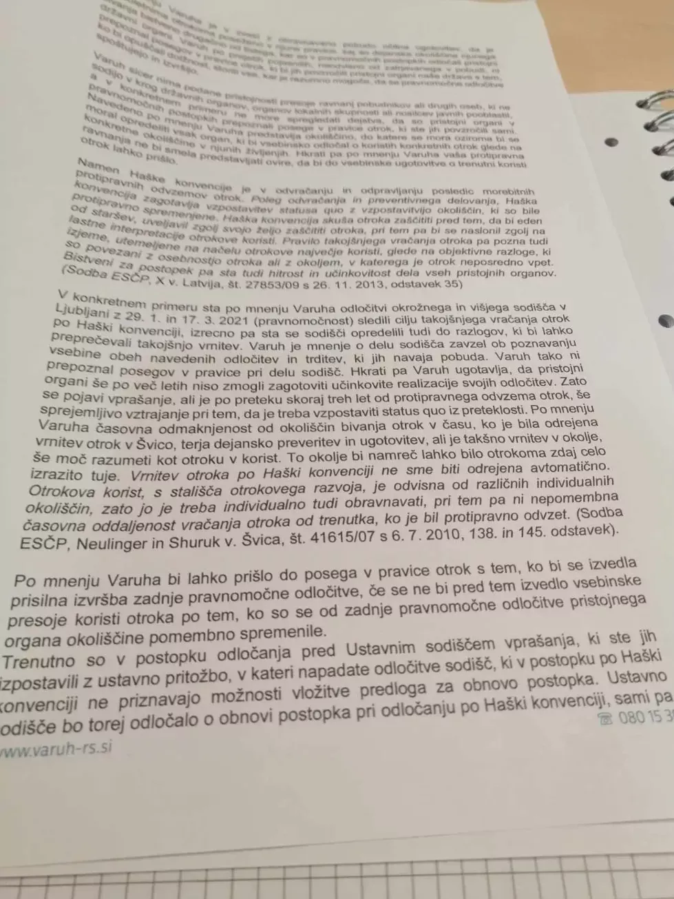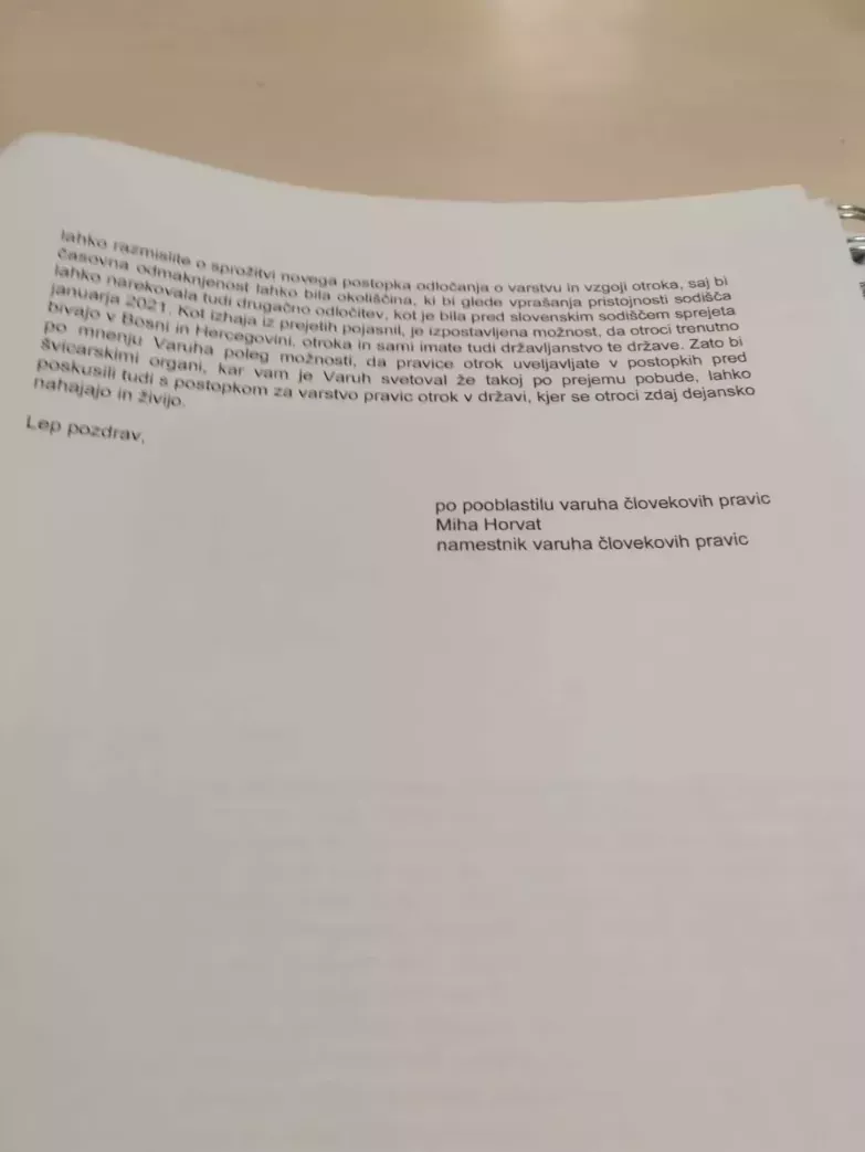 Ob koncu članka prilagamo še del odločbe z Urada Varuha človekovih pravic. V tem dokumentu boste z lahkoto razbrali, da ima v celotni zadevi Ranis Smajlović prav in je bil resnična žrtev dela zaposlenih vrst iz slovenskega sodstva, tožilstva, policije, centrov za socialno delo ter nekaterih švicarskih institucij.