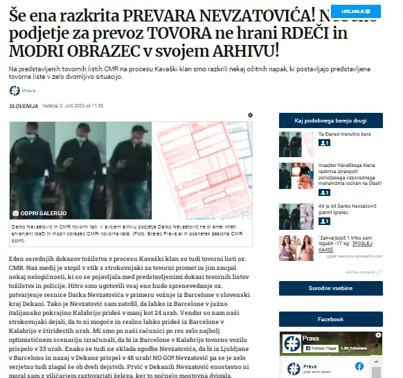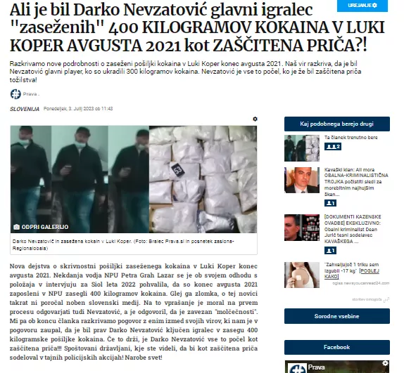 Kasneje se je izkazalo, da se je o tem gladko zlagal Dean Jurič na pričanju, da je to prebral na 24ur. Vendar o tem takrat ni poročal noben slovenski medij!!! Mi pa smo julija v članku z naslovom Ali je bil Darko Nevzatović glavni igralec "zaseženih" 400 KILOGRAMOV KOKAINA V LUKI KOPER AVGUSTA 2021 kot ZAŠČITENA PRIČA?! objavljen dne tretjega julija 2023 zapisali med drugim: