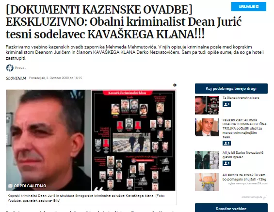 Verjetno nas primer ne bi toliko zanimal, če januarja ne bi v enem izmed osrednjih medijev prebrali novico, da bo osrednja priča tožilstva Darko Nevzatović. Njegovo ime se je prvič v našem mediju pojavilo v predstavljenih kazenskih ovadbah in v pismu poslani srbski ambasadi v Sloveniji v članku z naslovom [DOKUMENTI KAZENSKE OVADBE] EKSKLUZIVNO: Obalni kriminalist Dean Jurić tesni sodelavec KAVAŠKEGA KLANA!!! .