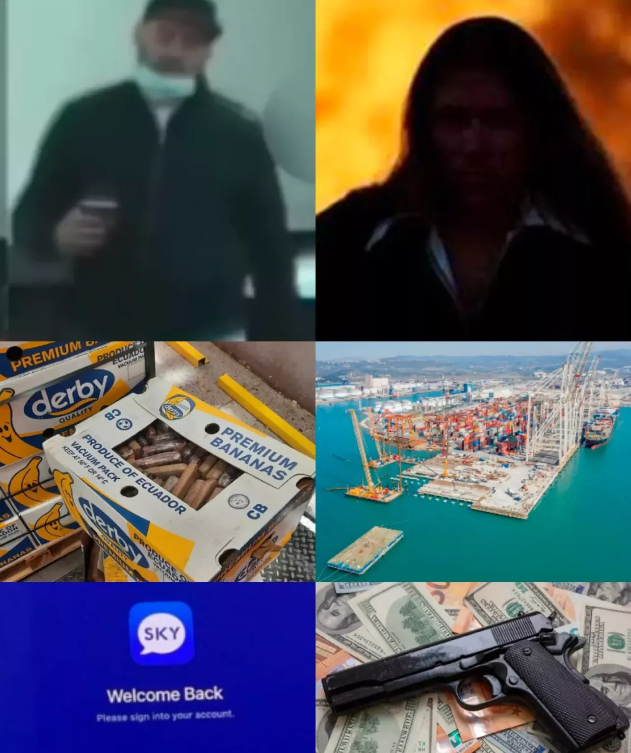 Darko Nezvatović, filmski lik Keyser Söze, kokain najden v škatlah podjetja Derby, Luka Koper, Sky aplikacija in orožje ter denar. (Foto: Prava.si, posnetek zaslona: Google, N1 Slovenija, Luka Koper, Sky)