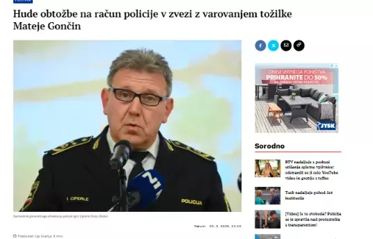 Glej ga zlomka, v spletnem mediju Nova24tv se pojavi članek Hude obtožbe na račun policije v zvezi z varovanjem tožilke Mateje Gončin. Kot smo slutili, so glavnemu desnemu medijuv Sloveniji nastavili zelo dobro past. Že nekaj ur kasneje, ob 14:32h Večer objavi članek "kraljice črne kronike" Damjane Žist z naslovom Očitki tožilke so hudi: Zakaj Mateje Gončin, ki ji grozi Kavaški klan, policija ne varuje več?