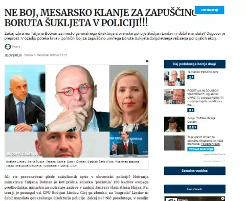 Kaj je najbolj zanimivo? Že dlje časa se dogajajo notranji boji v policiji po smrti Boruta Šukljeta. Zanimivo, tožilstvo je tudi zavrglo vse kazenske ovadbe proti "Janševi policiji iz obdobja 2020-2022" glede nepravilnega postopanja pri "ljudskih spontanih" protesih v režiji aktivstov Jaše Jenulla in kompanije. Preiskujejo pa samo še protest iz 21. oktobra 2021 so poročali prosto po Dejanu Verčiču "vladni bilten" Necenzurirano. Zdaj pa se želi še ustvariti novo medijsko vojno med Specializiranim državnim tožilstvom in Centrom za varovanje in zaščito.